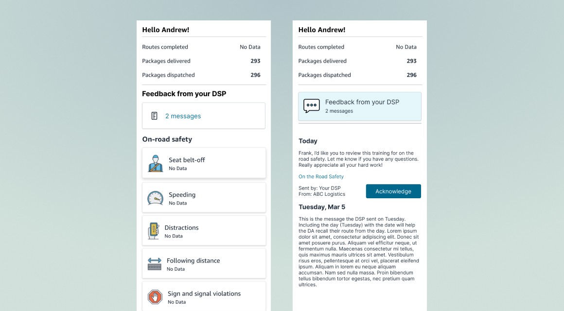 Built "in-context" cues, surfacing coaching tasks in areas where DSPs were already looking within the app to reduce friction.
